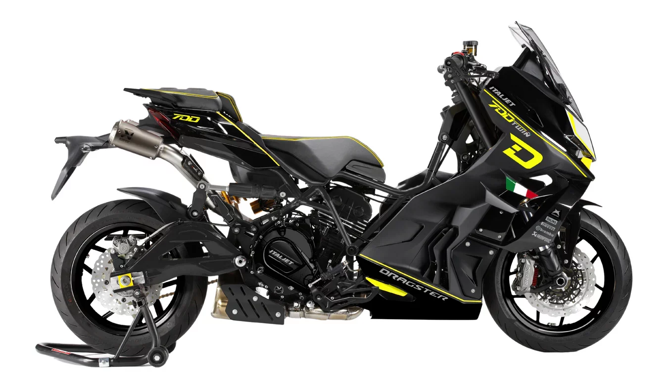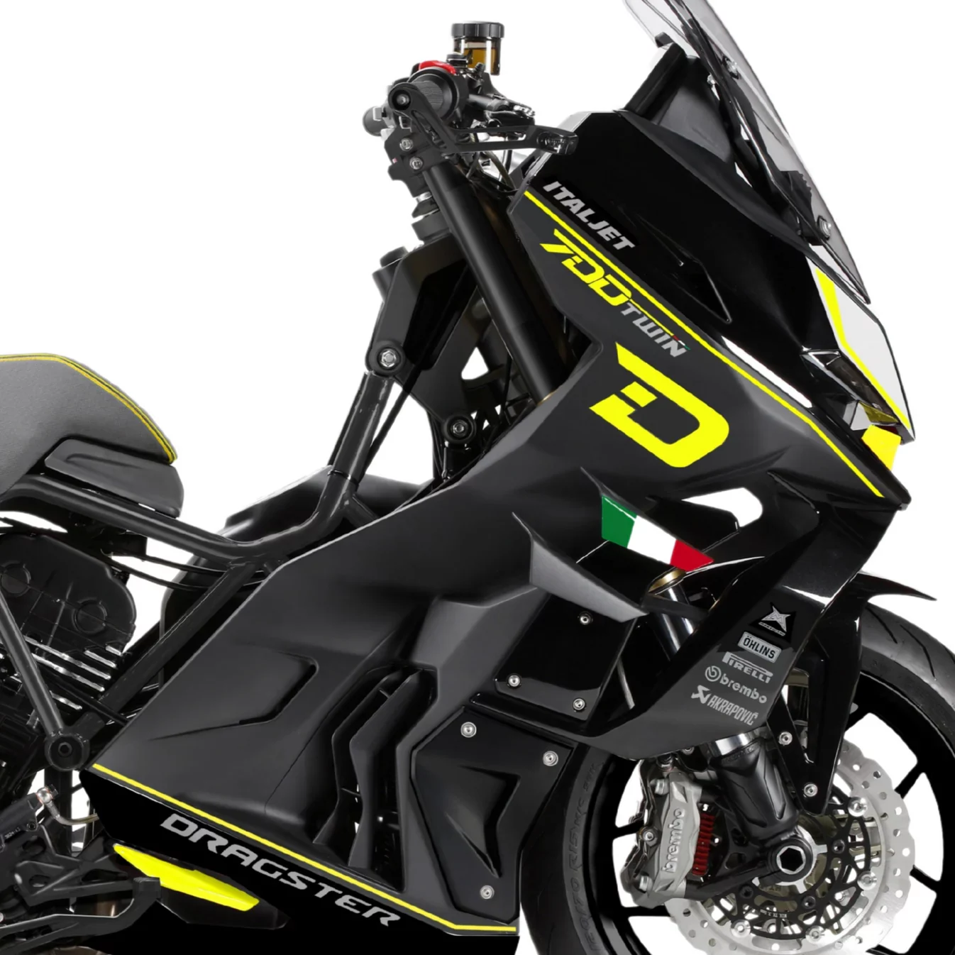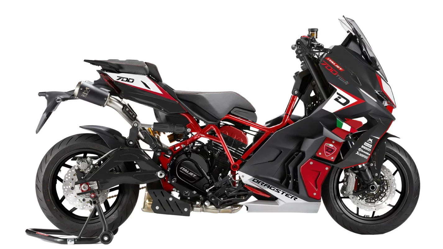 La Italjet Dragster 700 Twin Premium Edition ofrece componentes de alto rendimiento, un estilo atrevido y facilidad de uso diario, todo ello construido a partir del ADN de la moto de calle más agresiva del mundo.